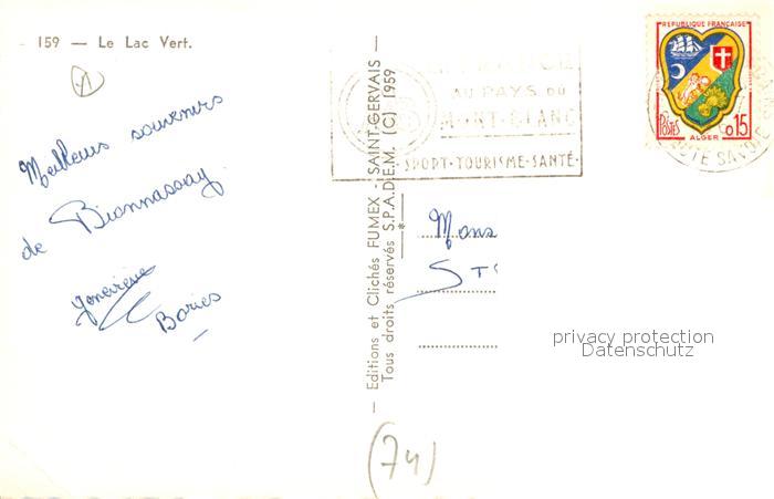 12955926 carte postale Passy Bonneville Le Lac Vert postalisch gelaufen Erhaltung siehe scans [FriedD77] KatCode: 11170074274208