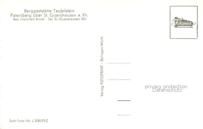 73762340 Patersberg Berggaststaette Teufelstein Burg Reichenberg Loreley Burg Katz Burg Rheinfels Burg Maus postalisch nicht gelaufen Erhaltung siehe scans [FriedD77] KatCode: 11110007141109