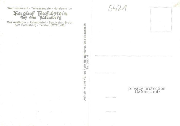 74040974 Patersberg Weinrestaurant Terrassencafe Berghof Teufelstein auf dem Patersberg postalisch nicht gelaufen Erhaltung siehe scans [WerneD78] KatCode: 11110007141109