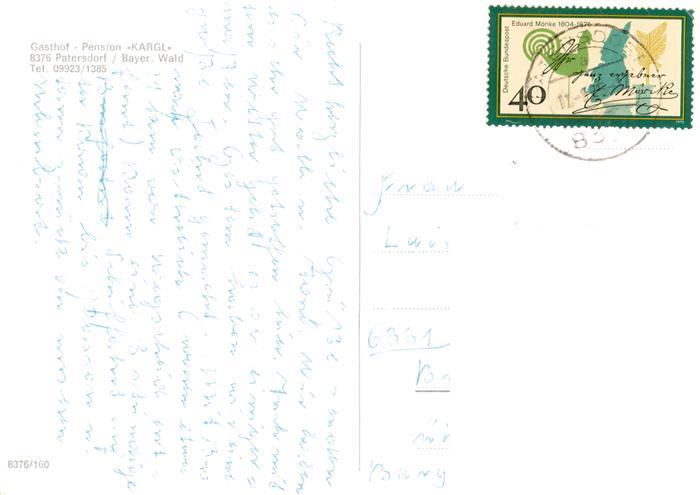 73875443 alte Postkarte Patersdorf Gasthof Pension Kargl Gastraeume Panorama postalisch gelaufen Erhaltung siehe scans [FriedD77] KatCode: 11110009276134