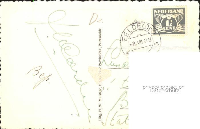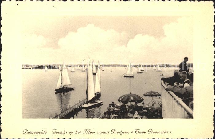 old postcard Paterswolde Gezicht op het Meer vanuit Paviljoen Twee Provincien Segelsport postalisch gelaufen Erhaltung siehe scans