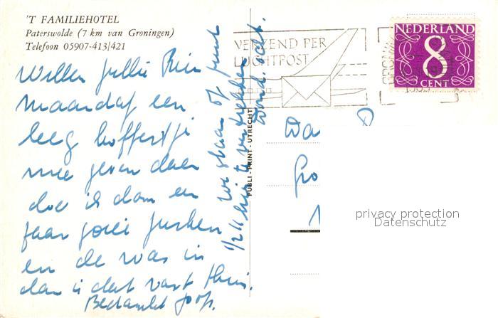 old postcard Paterswolde t Familiehotel postalisch gelaufen Erhaltung siehe scans [WerneD78]
