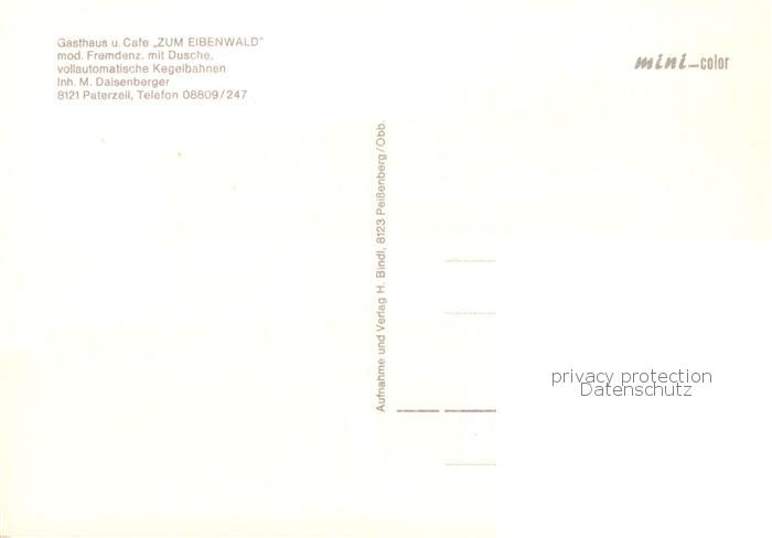 73835182 Paterzell Gasthaus und Cafe Zum Eibenwald postalisch nicht gelaufen Erhaltung siehe scans [WerneD78] KatCode: 11110009190158