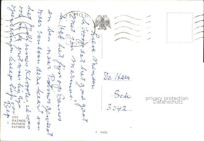 old postcard Patmos Sporaden Dodekanes Stadtansicht postalisch gelaufen Erhaltung siehe scans