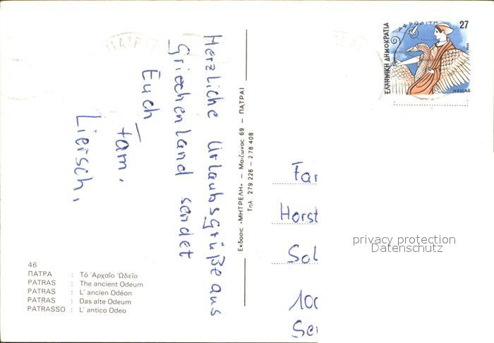 old postcard Patras Alte Odeum postalisch gelaufen
