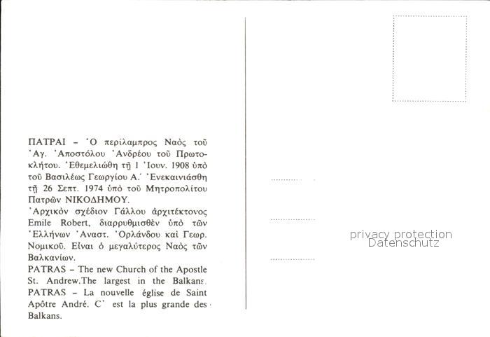 Patras Nouvelle Eglise de Saint Apotre Andre Kirche postalisch nicht gelaufen Erhaltung siehe scans