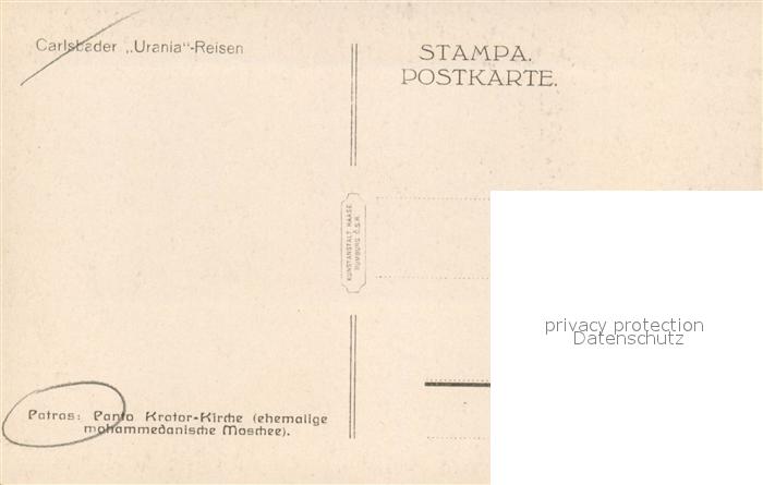 43184628 Patras Panto Krator Kirche ehemalige mohammedanische Moschee Carlsbader Urania Reisen postalisch nicht gelaufen Erhaltung siehe scans [FriedD77] Frie Katcode 11190