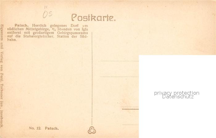 43277010 Patsch Dorfansicht mit Kirche Landschaftspanorama Alpen Stubaier Gletscher Kuenstlerkarte postalisch nicht gelaufen Erhaltung siehe scans [FriedD77] KatCode: 11390332070338