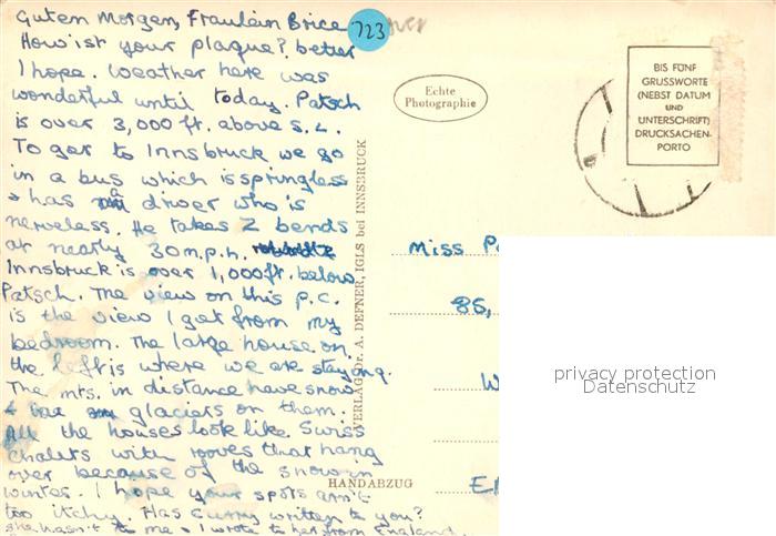 73512738 alte Postkarte Patsch Gasthof Baer postalisch gelaufen Erhaltung siehe scans [KathaD81] KatCode: 11390332070338