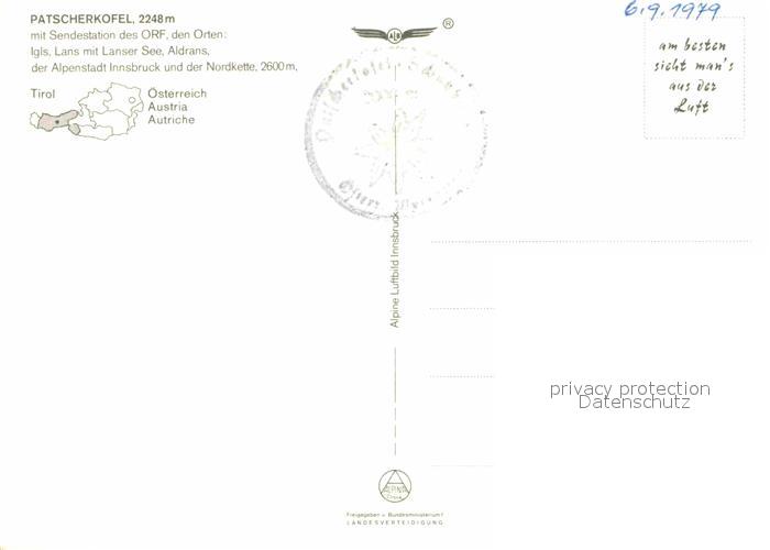 72900245 alte Postkarte Patscherkofel Fliegeraufnahme postalisch gelaufen Erhaltung siehe scans [LiesaD40] KatCode: 11390