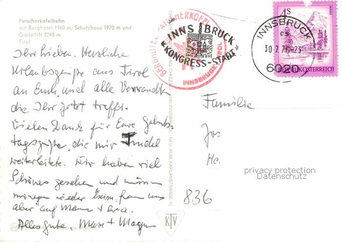 72618611 alte Postkarte Patscherkofel Patscherkofelbahn Berghotel Schutzhaus Gipfellift postalisch gelaufen Erhaltung siehe scans [FriedD77] KatCode: 11390