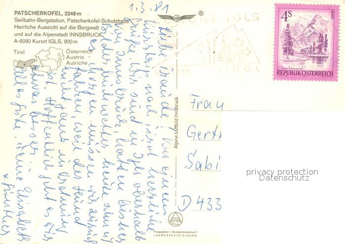 73704492 alte Postkarte Patscherkofel Seilbahn Bergstation Patscherkofel Schutzhaus Fliegeraufnahme postalisch gelaufen Erhaltung siehe scans [WerneD78] KatCode: 11390