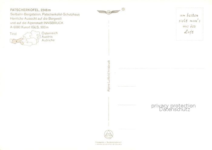 73245809 Patscherkofel Seilbahn Bergstation Schutzhaus Winterpanorama Bergwelt Fliegeraufnahme postalisch nicht gelaufen Erhaltung siehe scans [FriedD77] KatCode: 11390