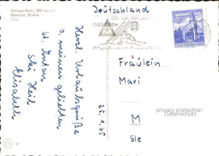 71909558 alte Postkarte Patteriol Valluga Bahn postalisch gelaufen KatCode: 11390