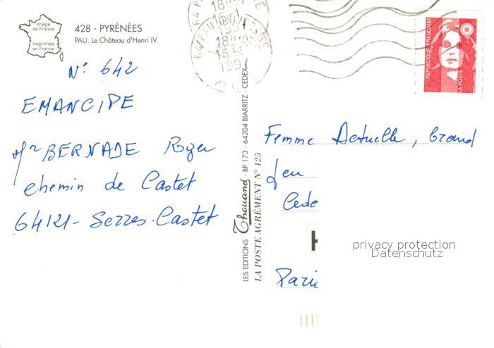 13253324 carte postale Pau 64 Chateau postalisch gelaufen Erhaltung siehe scans [KathaD81] KatCode: 11170064364445