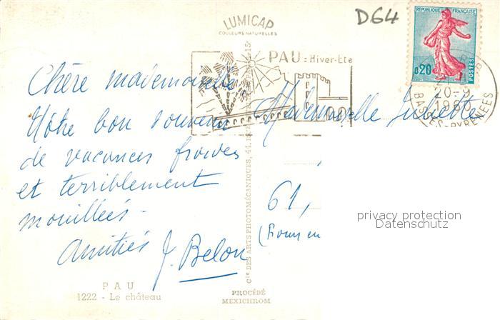 13513822 carte postale Pau 64 Chateau Henri IV postalisch gelaufen Erhaltung siehe scans [FriedD77] KatCode: 11170064364445
