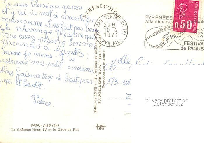 13537578 carte postale Pau 64 Chateau Henri IV et le Gave de Pau postalisch gelaufen Erhaltung siehe scans [FriedD77] KatCode: 11170064364445