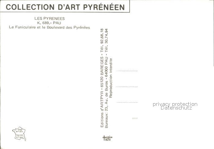 12429834 Pau 64 Le Funiculaire et le Boulevard des Pyrenees postalisch nicht gelaufen Erhaltung siehe scans KatCode: 11170064364445