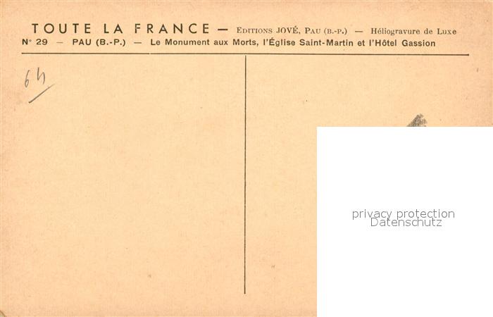 13603571 Pau 64 Monument aux Morts Eglise Saint Martin Hôtel Gassion postalisch nicht gelaufen Erhaltung siehe scans [FriedD77] Frie Katcode 11170064364445