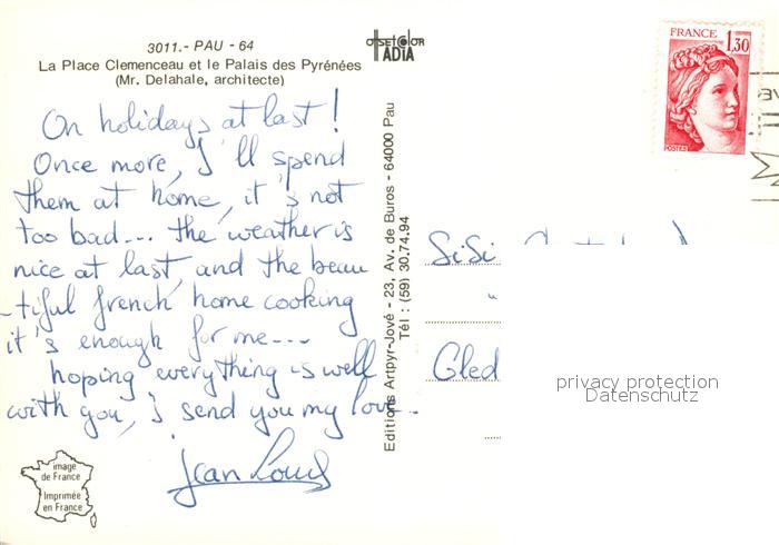 13066235 carte postale Pau 64 Place Clemenceau Palais des Pyrenees postalisch gelaufen Erhaltung siehe scans [NatalD47] KatCode: 11170064364445