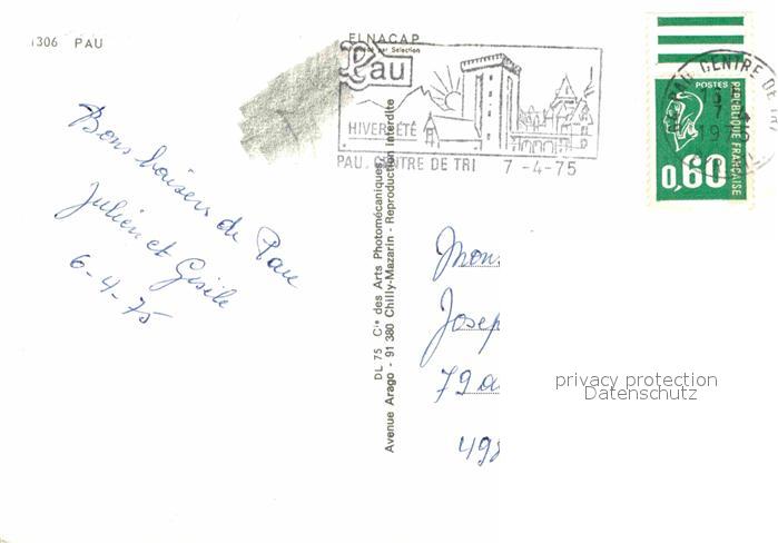 12878395 carte postale Pau 64 Schloss Bruecke Burg postalisch gelaufen Erhaltung siehe scans [AndreD76] KatCode: 11170064364445