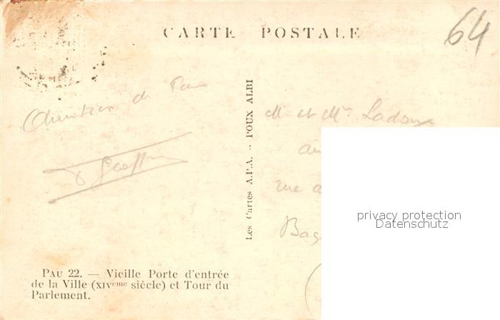 13575080 carte postale Pau 64 Vieille Porte d’entree de la Ville et Tour du Parlement postalisch gelaufen Erhaltung siehe scans [WerneD78] KatCode: 11170064364445