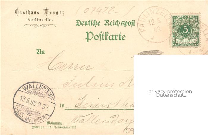 33139222 alte Postkarte Paulinzella Panorama Gasthaus Menger Kirchenruine postalisch gelaufen Erhaltung siehe scans [KathaD81] KatCode: 11110016073075