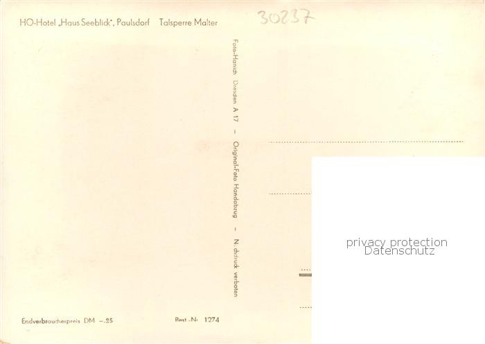 73828808 Paulsdorf Dippoldiswalde HO Hotel Haus Seeblick Talsperre Malter postalisch nicht gelaufen Erhaltung siehe scans [WerneD78] KatCode: 11110014290080
