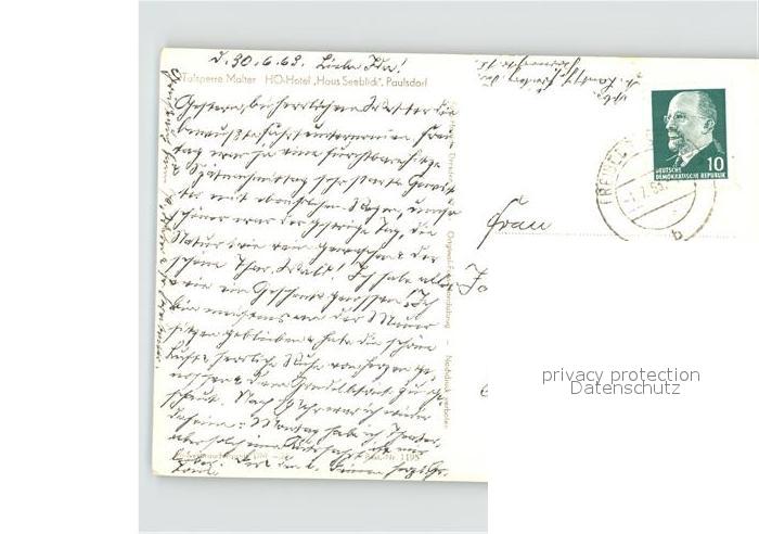 71973910 alte Postkarte Paulsdorf Dippoldiswalde Talsperre Malter Ho Hotel Seeblick postalisch gelaufen Erhaltung siehe scans KatCode: 11110014290080