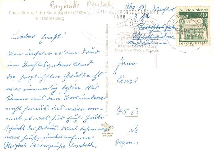 73937217 alte Postkarte Paulshuette 1189m Berchtesgaden auf der Kneifelspitze mit Untersberg postalisch gelaufen Erhaltung siehe scans [WerneD78] KatCode: 11110009172116