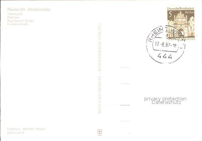 72049519 alte Postkarte Pausa Panorama Rathaus Paul Scharf Str Friedensstrasse postalisch gelaufen Erhaltung siehe scans KatCode: 11110014178480
