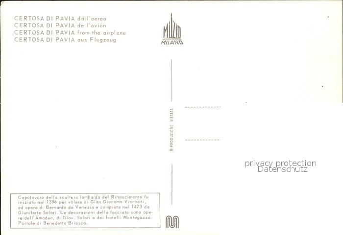 Pavia Fliegeraufnahme Certosa postalisch nicht gelaufen Erhaltung siehe scans