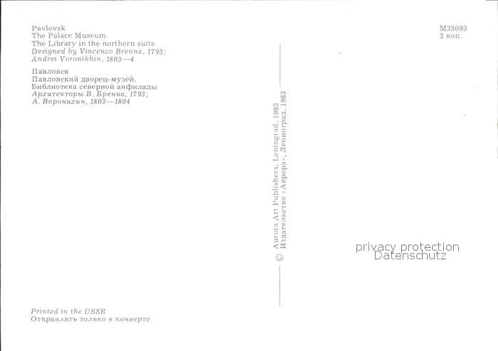 Pawlowsk Palace Museum Library postalisch nicht gelaufen Keine Postkarte (siehe scan) Erhaltung siehe scans [NatalD47]