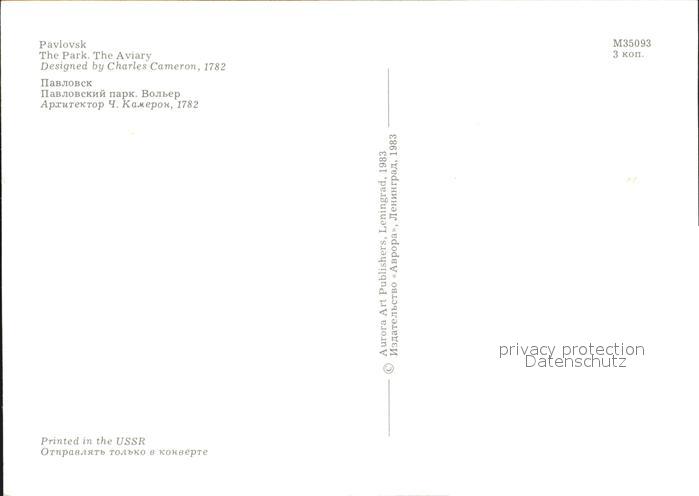 Pawlowsk Park Aviary postalisch nicht gelaufen Keine Postkarte (siehe scan) Erhaltung siehe scans [NatalD47]