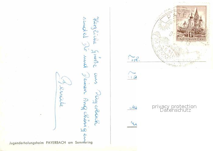 72893521 alte Postkarte Payerbach Jugenderholungsheim am Semmering postalisch gelaufen Erhaltung siehe scans [LiesaD40] KatCode: 11390122031821