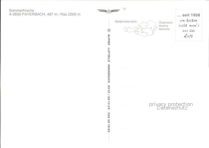 72212168 Payerbach mit Rax Fliegeraufnahme postalisch nicht gelaufen Erhaltung siehe scans KatCode: 11390122031821