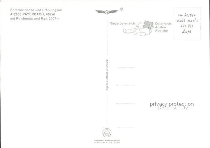 72212167 Payerbach mit Reichenau und Rax Fliegeraufnahme postalisch nicht gelaufen Erhaltung siehe scans KatCode: 11390122031821