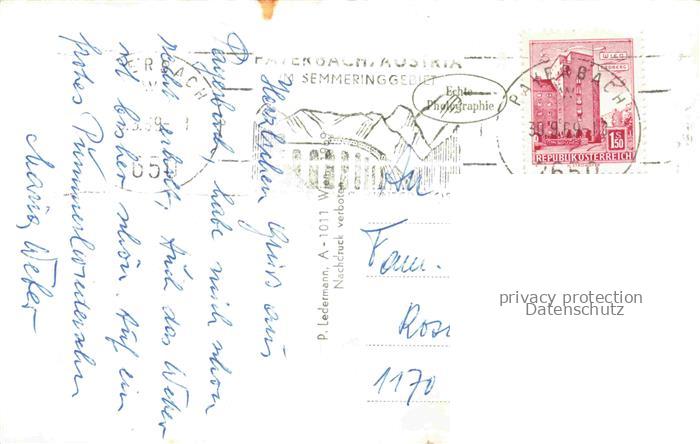 74156228 alte Postkarte Payerbach Niederoesterreich AT Hotel-Pension-Astrid Viadukt Eisenbahnbruecke Wald Huegel Haeuser Semmering postalisch gelaufen Erhaltung siehe scans [Karloger] KatCode: 11390122031821
