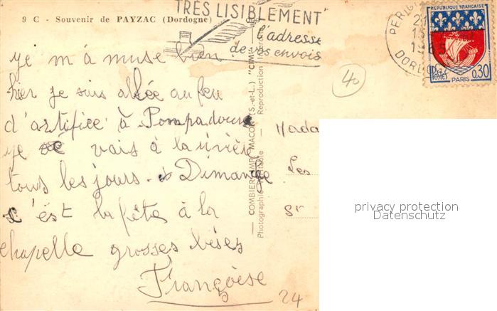 13498167 carte postale Payzac Dordogne Sehenswuerdigkeiten postalisch gelaufen Erhaltung siehe scans [KathaD81] KatCode: 11170024224320