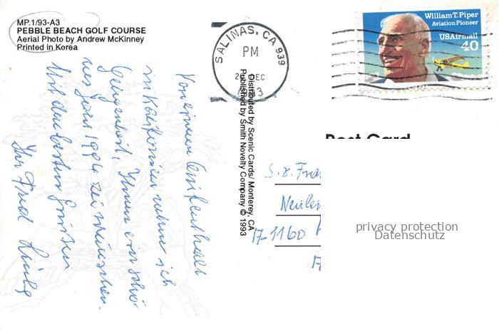 74095222 old postcard Pebble Beach California USA Fliegeraufnahme postalisch gelaufen Erhaltung siehe scans [WerneD78] KatCode: 14140050000000