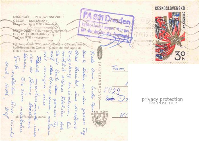 74022739 old postcard Pec pod Snezkou CZ Erholungsheim CTK und Kovahute Landschaftspanorama postalisch gelaufen Erhaltung siehe scans [FriedD77] KatCode: 11520