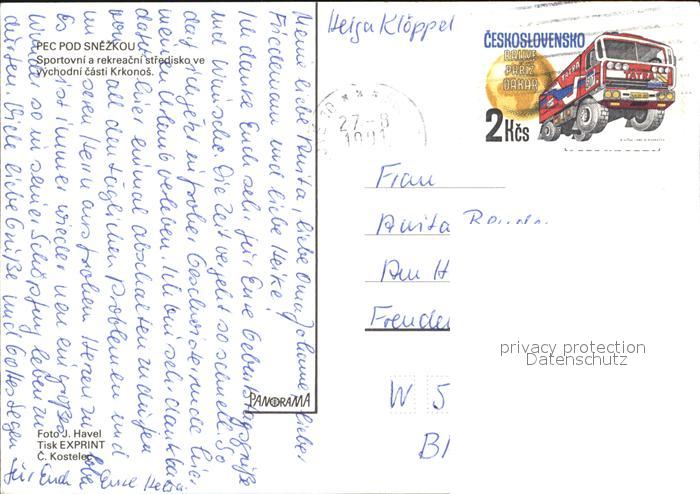 old postcard Pec pod Snezkou Krkonose Panoramen postalisch gelaufen Erhaltung siehe scans