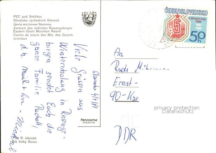 old postcard Pec pod Snezkou Skigebiet Seilbahn postalisch gelaufen Erhaltung siehe scans