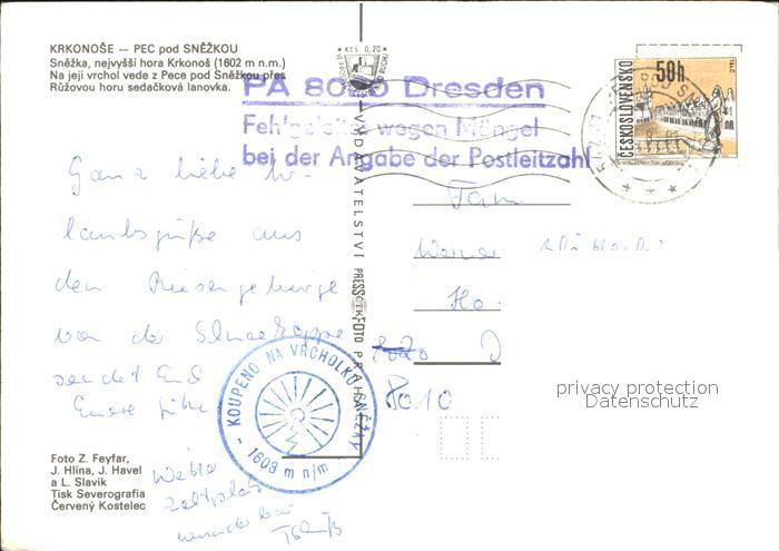 old postcard Pec pod Snezkou Snezka hora Krkonos Sesselbahn postalisch gelaufen Erhaltung siehe scans