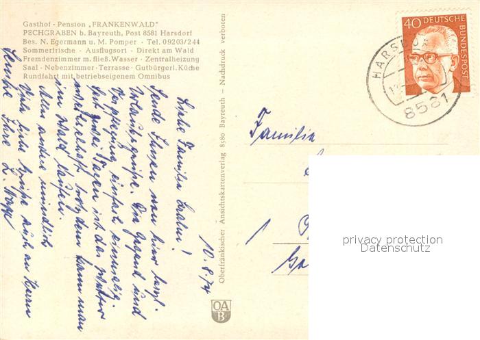 73666167 alte Postkarte Pechgraben Gasthaus Pension Frankenwald postalisch gelaufen Erhaltung siehe scans [LiesaD40] KatCode: 11110009477142