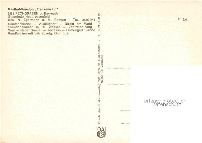 72825211 Pechgraben Gasthof Pension Frankenwald Badestrand See Huette postalisch nicht gelaufen Erhaltung siehe scans [FriedD77] KatCode: 11110009477142
