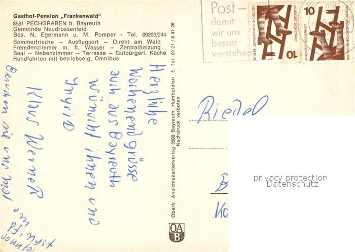 73167204 alte Postkarte Pechgraben Gasthof Pension Frankenwald Sommerfrische Huette Badesee postalisch gelaufen Erhaltung siehe scans [FriedD77] KatCode: 11110009477142