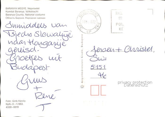 old postcard Pecs Baranya Megye Trachten postalisch gelaufen Erhaltung siehe scans