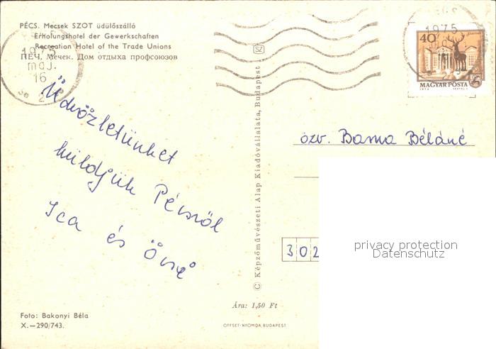 old postcard Pecs Erholungshotel der Gewerkschaften postalisch gelaufen Erhaltung siehe scans