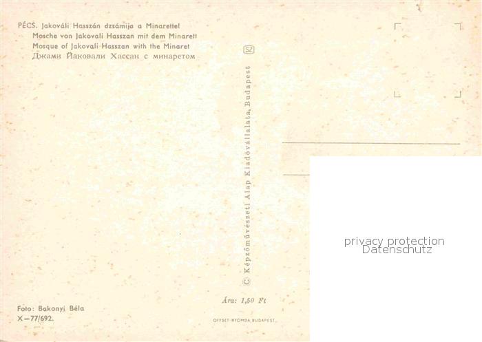 Pecs Jakovali Hasszan dzsamija a Minarettel Moschee Minarett postalisch nicht gelaufen Erhaltung siehe scans [FriedD77]